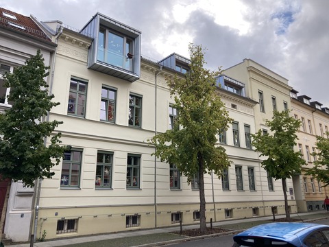Zur Schaffung neuer Hortkapazitäten wurde während der Modernisierung und Instandsetzung von 2019-2020 im Förderprogramm „Stadtumbau Aufwertung“ das 2. Obergeschoss baulich hergerichtet und das Dachgeschoss inkl. Schleppgaubenfenstern ausgebaut. Treppenräume und Flucht- und Rettungswege wurden neugestaltet sowie die Anforderungen an die Barrierefreiheit und den Brandschutz umgesetzt.