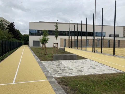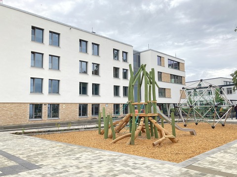 Im Sommer 2021 fanden bereits die Abbrucharbeiten an den Nebengebäuden statt. Die Grundsubstanz des Hauptgebäudes konnte erhalten und im Süden und Norden um einen Anbau erweitert werden. Die zweizügige Grundschule mit Hort bietet Platz für bis zu 288 Kinder. Das Schulgebäude, die Eineinhalbfeldsporthalle und die Außensportanlagen sind barrierefrei begehbar.