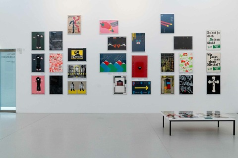 Die Doppelausstellung verschränkt Plakate aus dem abgeschlossenen Schaffen des Berliner Grafikers Hubert Riedel mit dem des 2000 gegründeten und bis heute aktiven Berliner Grafikstudios ZWÖLF.