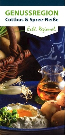 Flyer mit regionalen Herstellern von Lebens- und Genussmitteln in Cottbus und dem Landkreis Spree-Neiße