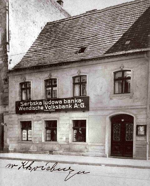 Heute erinnert eine unscheinbare Tafel am Gebäude in der Sandower Hauptstr. 45 an eine für die sorbische/wendische Geschichte nicht unbedeutende Einrichtung. Wo heute die Feuersozietät ihren Hauptsitz hat, befand sich eine sehr wichtige Institution, welche den Sorben/Wenden eine materielle Grundlage bot – die Wendische Volksbank. Aber was steckt dahinter? Und was wurde aus der Wendischen Volksbank?